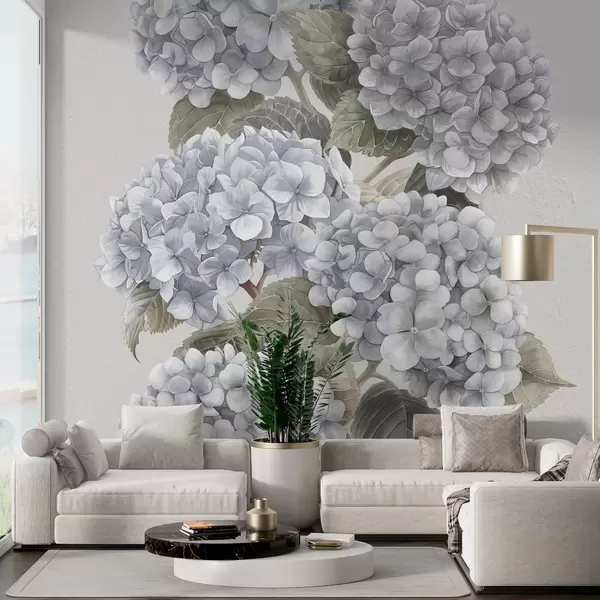 Fotomurales Ramas de hortensias en suaves colores pastel. Nr. w08176