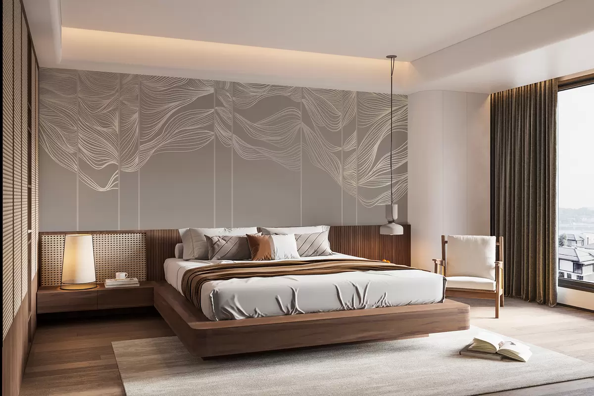 Fotomurales Ondas abstractas de líneas blancas sobre fondo marrón claro Nr. w08263