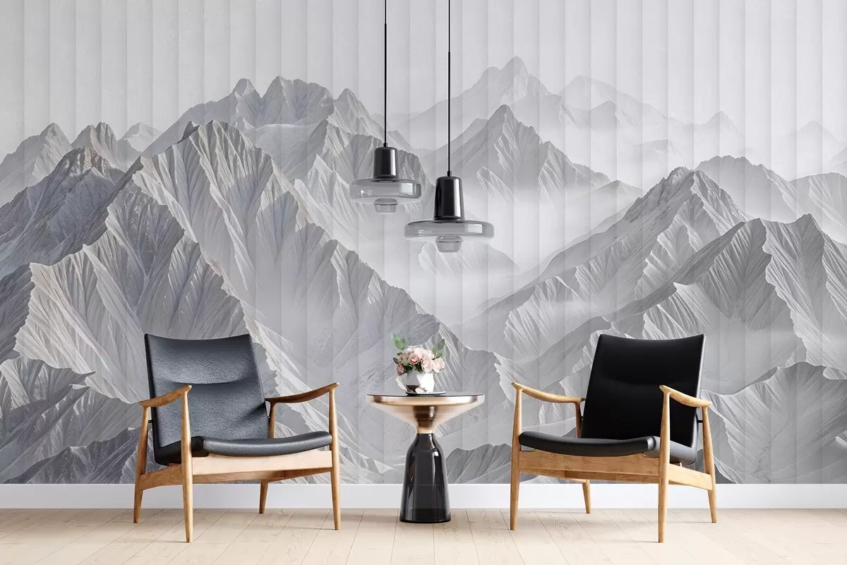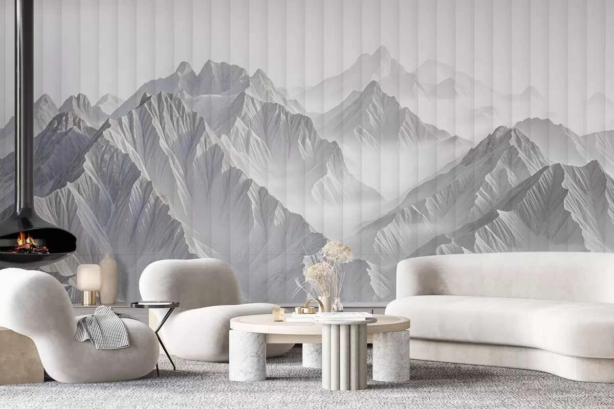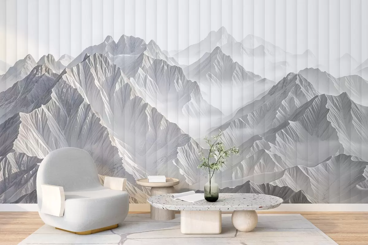 Fotomurales Picos de montaña minimalistas con textura nevada en un paisaje brumoso y etéreo Nr. w08378