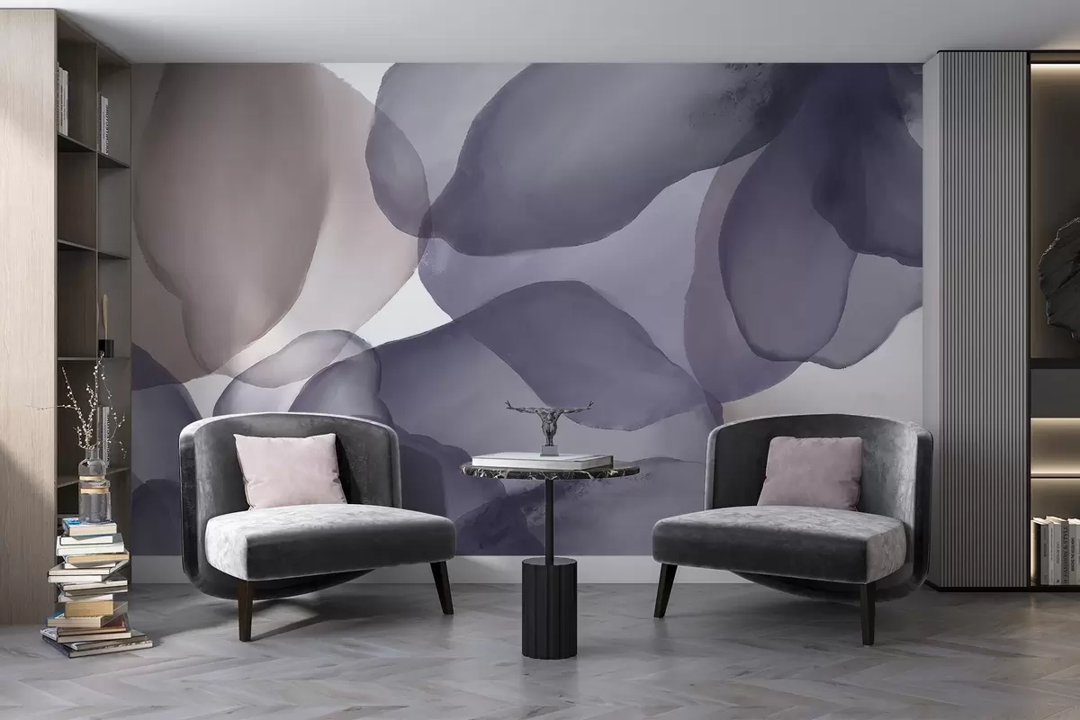 Fotomurales Formas florales abstractas de color morado oscuro y beige, formas suaves y orgánicas con sensación de movimiento y fluidez Nr. w08381