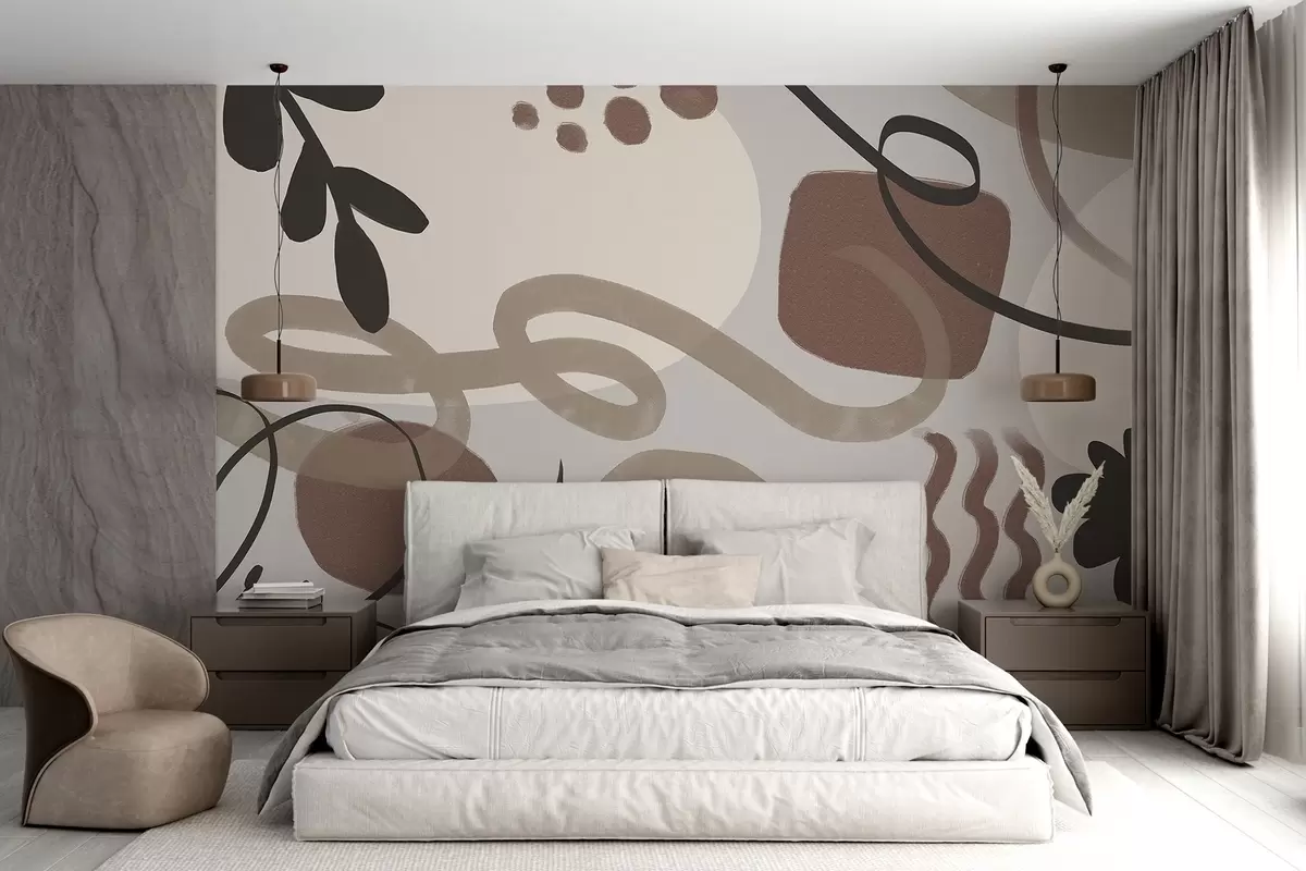 Fotomurales Estampado moderno minimalista de textura abstracta con formas en tonos terrosos de marrón, beige y negro Nr. w08384