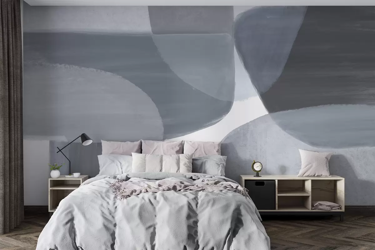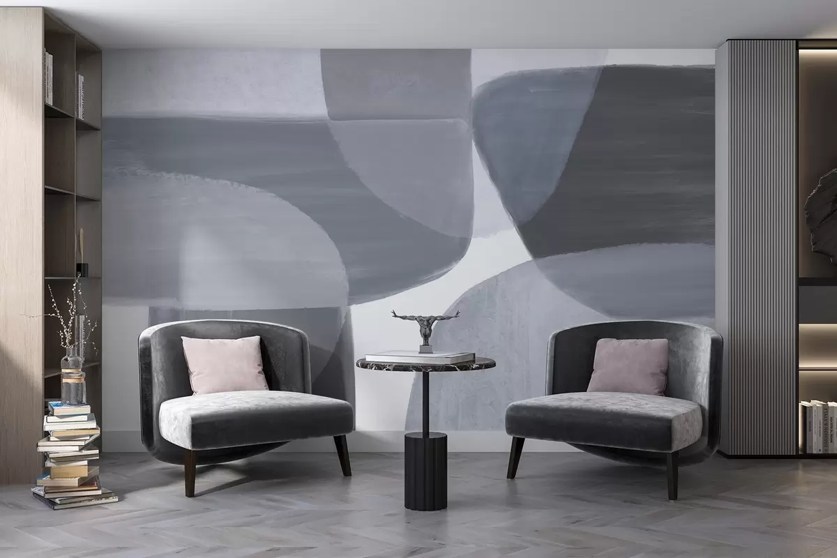 Fotomurales Un estampado abstracto monocromo con formas minimalistas superpuestas en tonos grises y azules. Nr. w08410