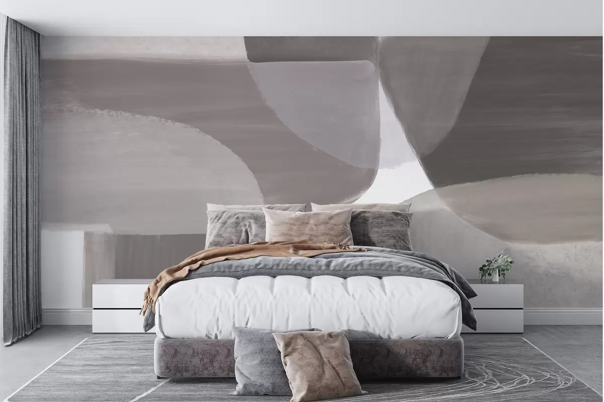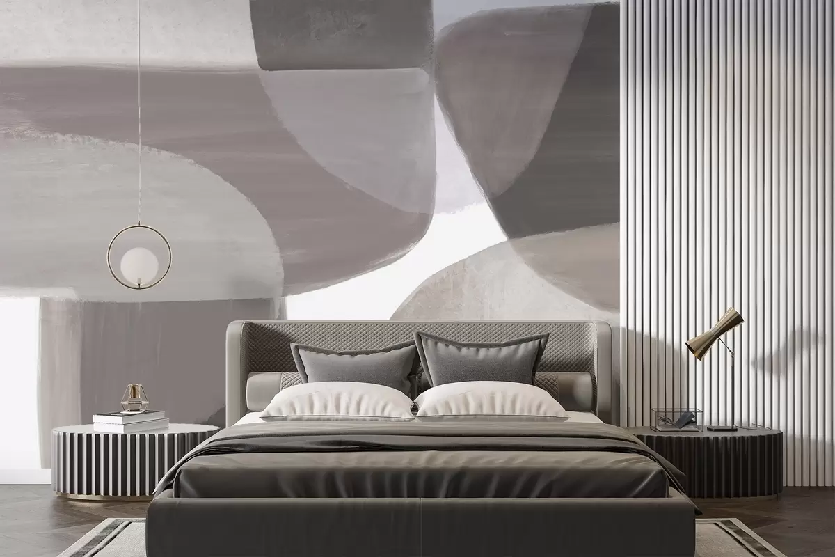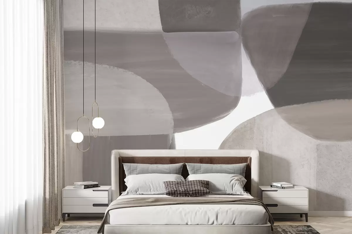 Fotomurales Un estampado abstracto monocromo con formas minimalistas superpuestas en tonos grises y beige. Nr. w08410v1
