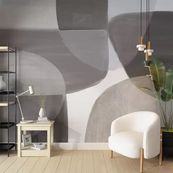 Fotomurales Un estampado abstracto monocromo con formas minimalistas superpuestas en tonos grises y beige. Nr. w08410v1
