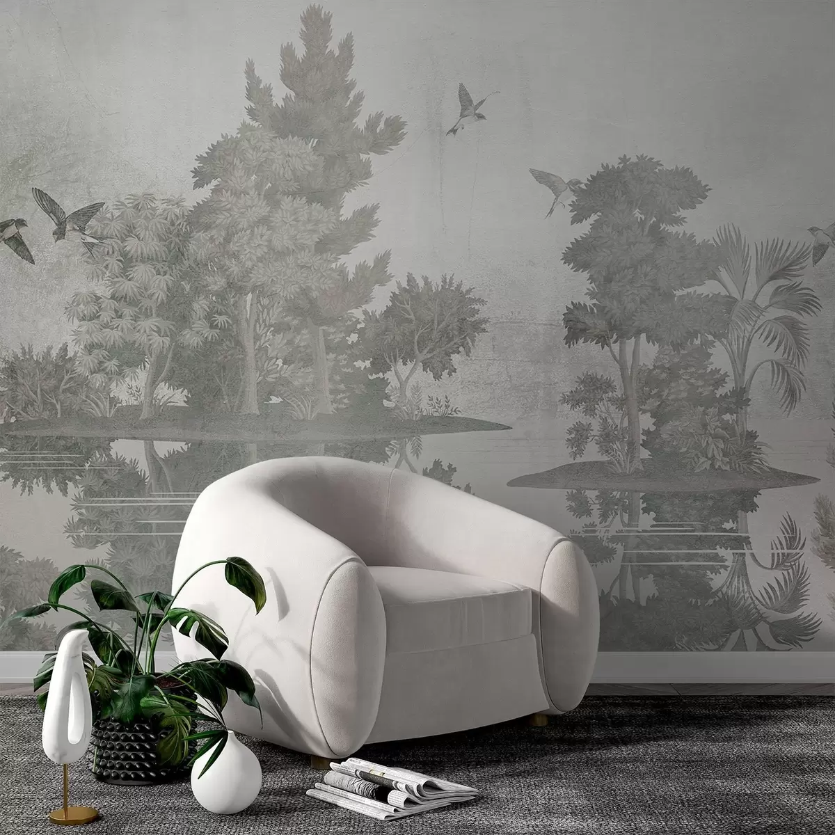 Puede limpiar el papel pintado muy suavemente con una esponja ligeramente humedecida. Sin embargo, no recomendamos frotar ni utilizar detergentes para limpiar el papel pintado, ya que podría dañar su acabado y sus colores.