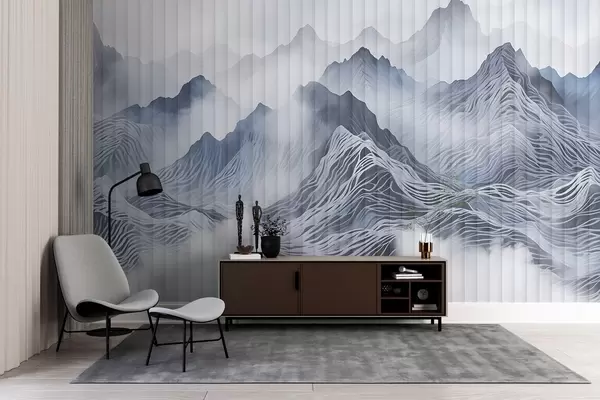 Fotomurales Paisaje montañoso abstracto y brumoso con colinas onduladas y picos en tonos grises y blancos Nr. w08440