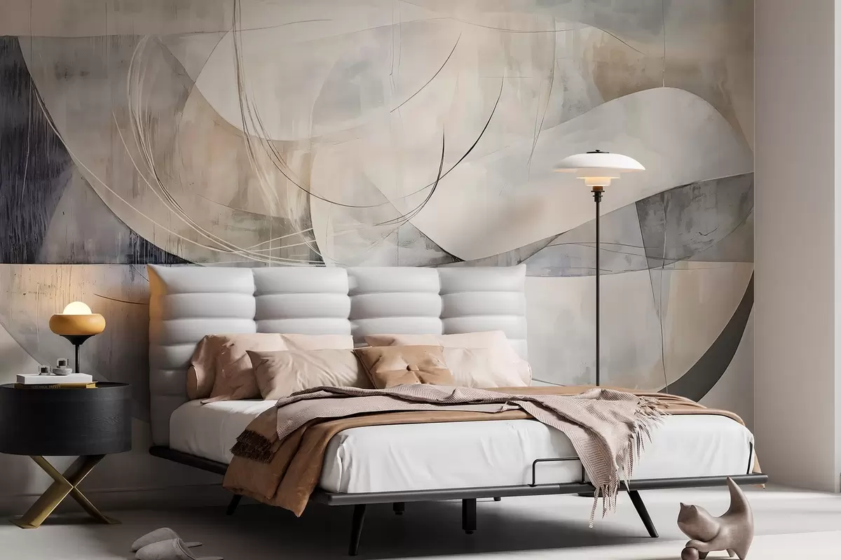 Fotomurales Formas abstractas en tonos blancos, grises, beige y azules sobre un fondo de textura difuminada Nr. w08461