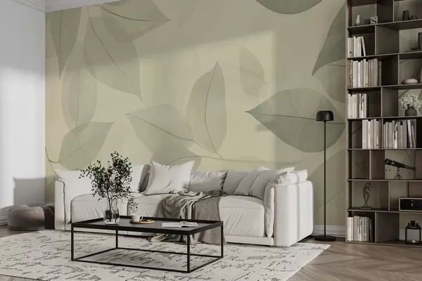 Fotomurales Ramas de hojas verdes sobre fondo beige suave Nr. w08502v2