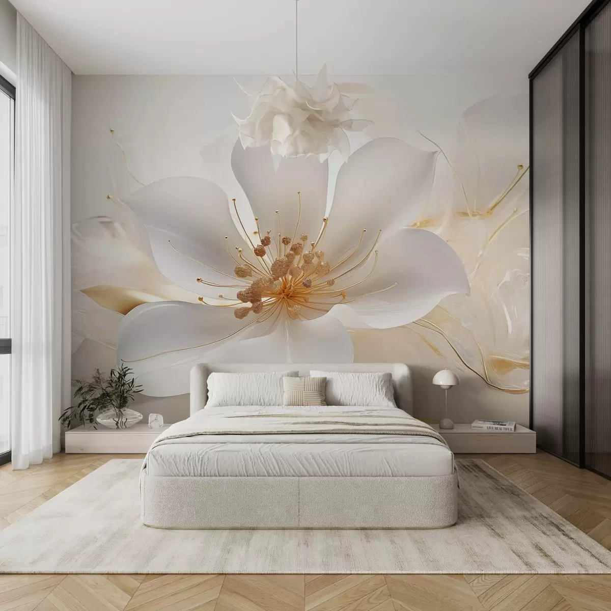 Fotomurales Gran flor blanca sobre fondo abstracto Nr. w08510