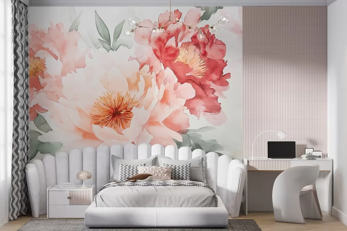 Fotomurales Grandes y delicadas peonías de acuarela Nr. w08571