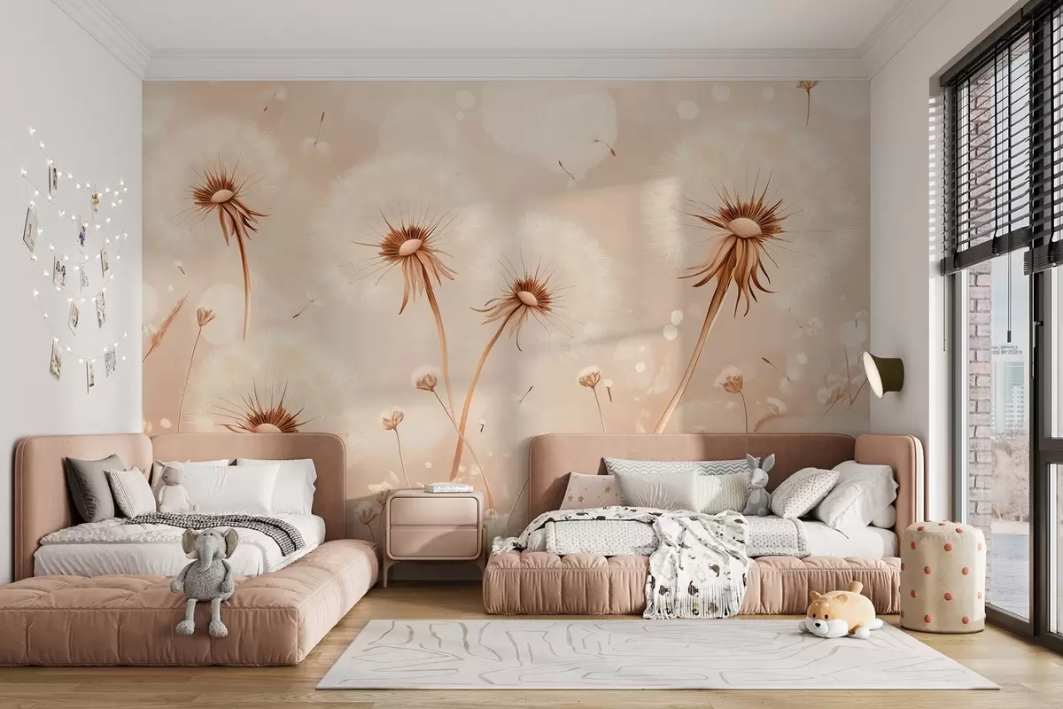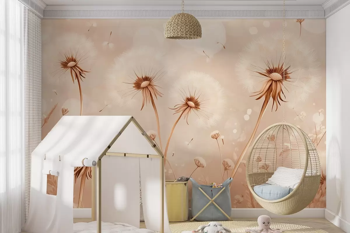 Fotomurales Elegantes dientes de león y flores silvestres en estilo pictórico en tonos cálidos Nr. w08657