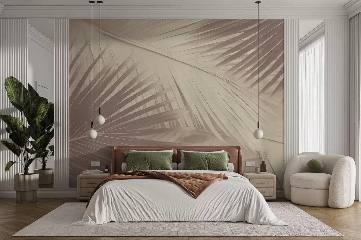 Fotomurales Hojas de palmera abstractas en tonos suaves Nr. w08677