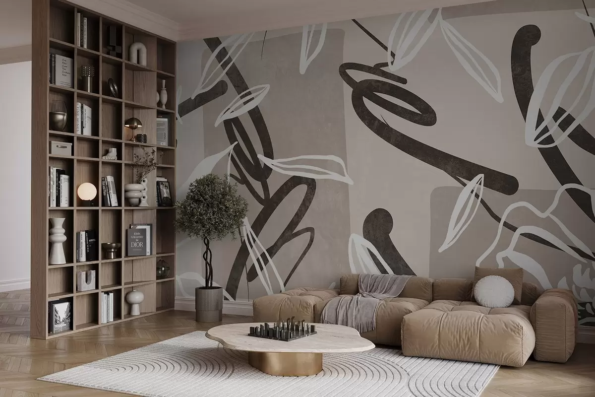 Fotomurales Diseño moderno y minimalista de textura abstracta con elementos florales en una paleta de color beige neutro Nr. w08888