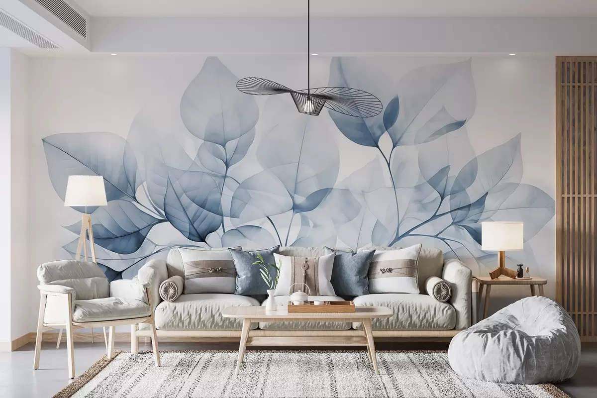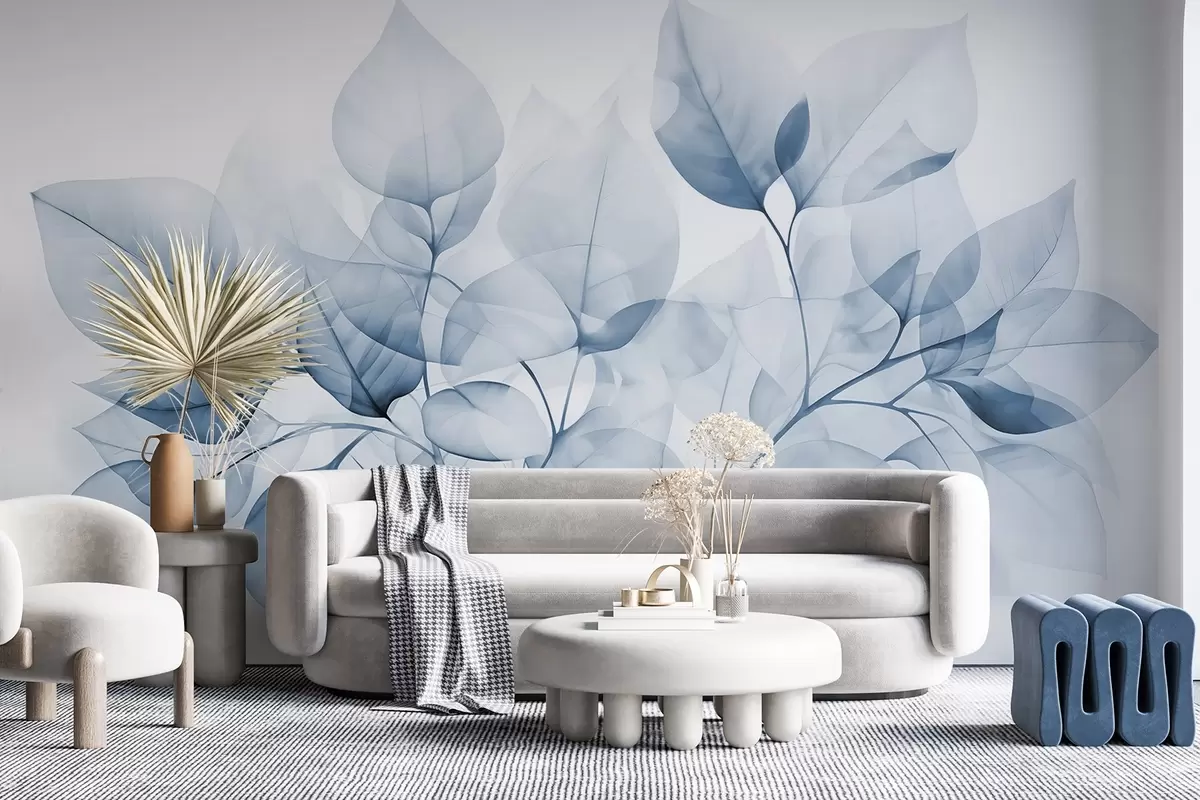 Fotomurales Acuarela de hojas translúcidas en colores pastel, con tonos blancos y azules Nr. w08910v1
