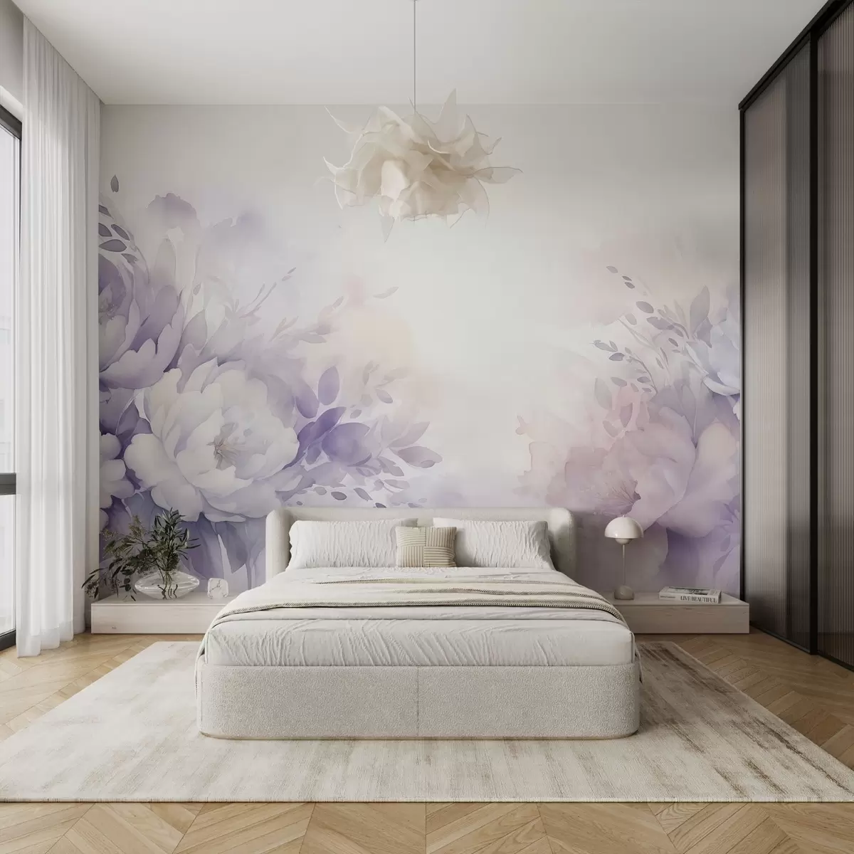 Fotomurales Grandes y delicadas flores lilas, imitación de acuarela Nr. w08946
