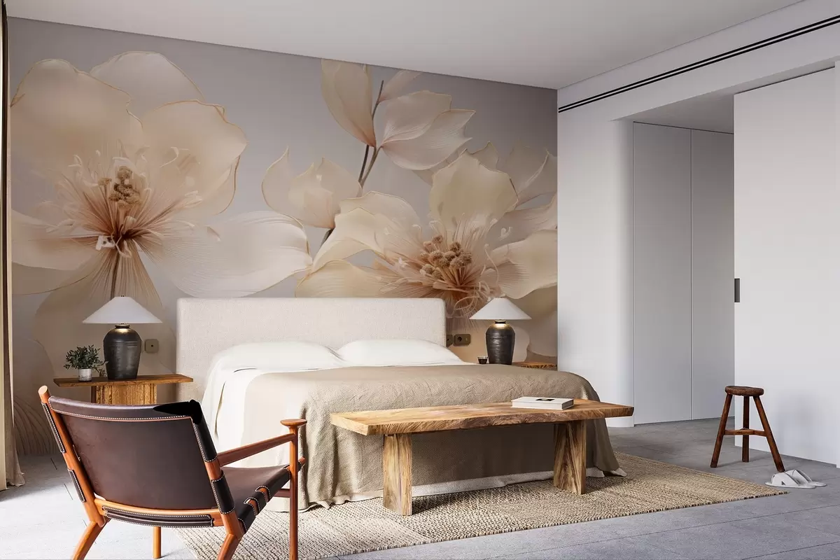 Fotomurales Flores de aire beige en tonos suaves Nr. w09016