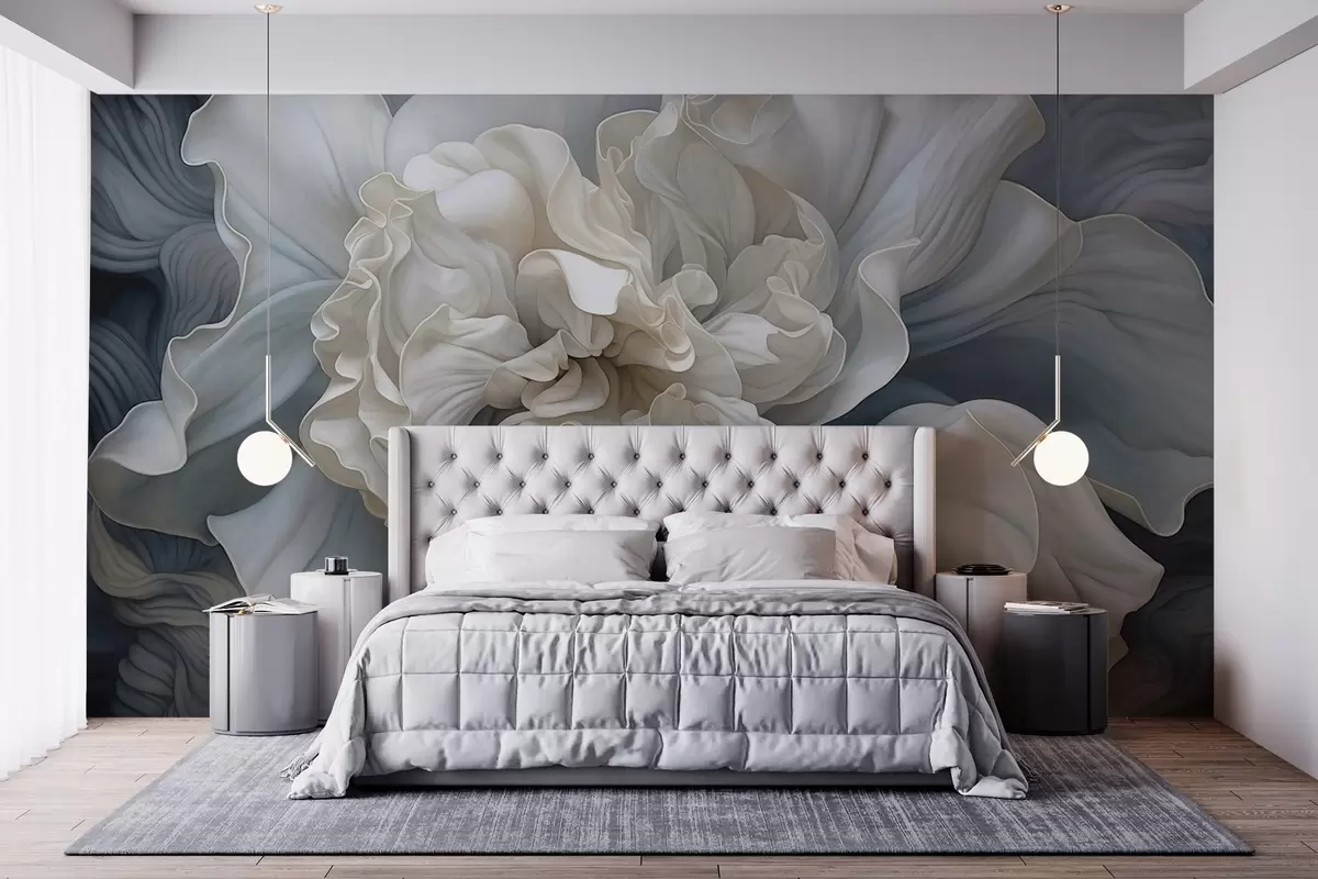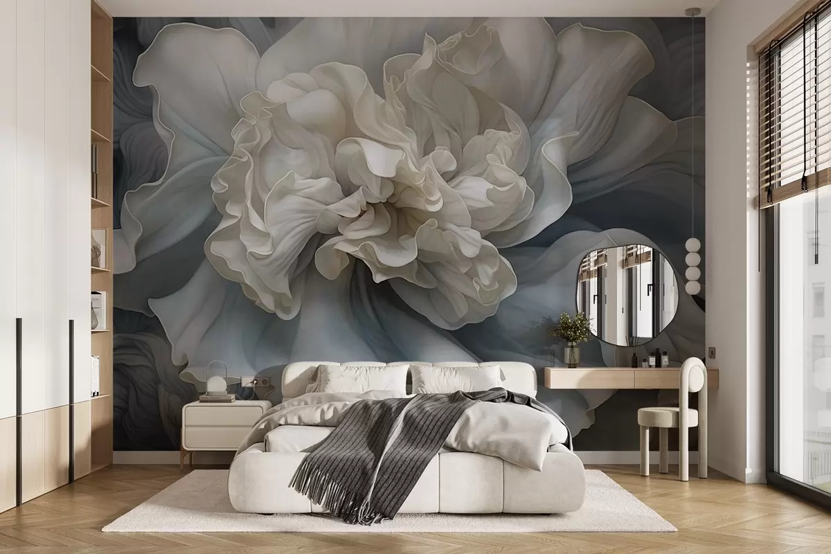 Fotomurales Abstracto gran flor decorativa con muchos pétalos, suave y delicado, con tonos azules y grises en el fondo Nr. w09055