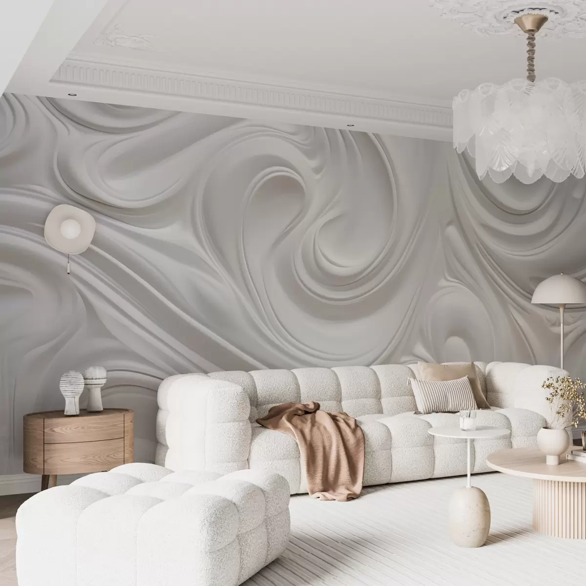 Fotomurales Arte moderno abstracto blanco con remolinos y ondas fluidas, textura suave, diseño elegante, estética minimalista Nr. w09059