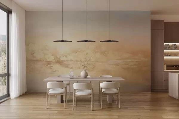Fotomurales Paisaje abstracto texturizado con colores cálidos, una atmósfera suave y soñadora y una mezcla de tonos naranjas, amarillos y blancos Nr. w09063