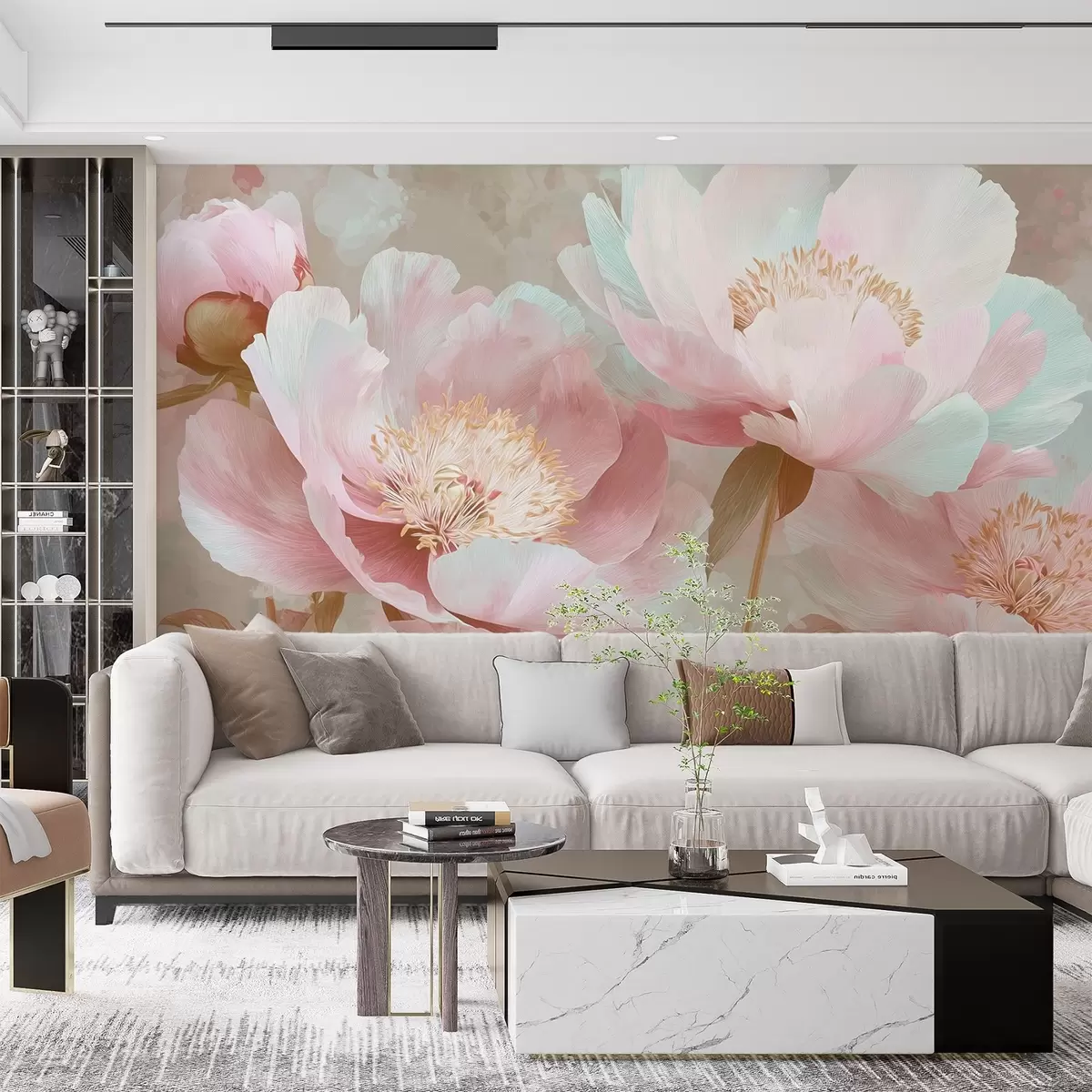Fotomurales Delicadas peonías en tonos rosa y beige Nr. w09087v1