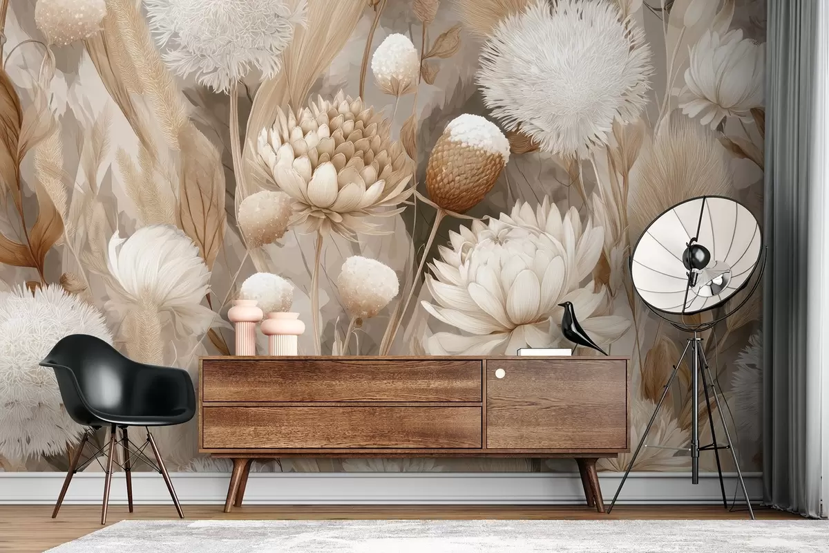 Fotomurales Armonía boho: Flores texturizadas en tonos beige y crema Nr. w09121