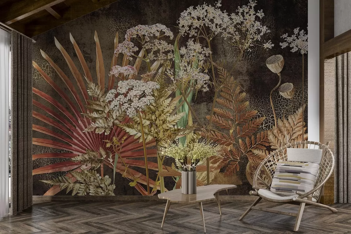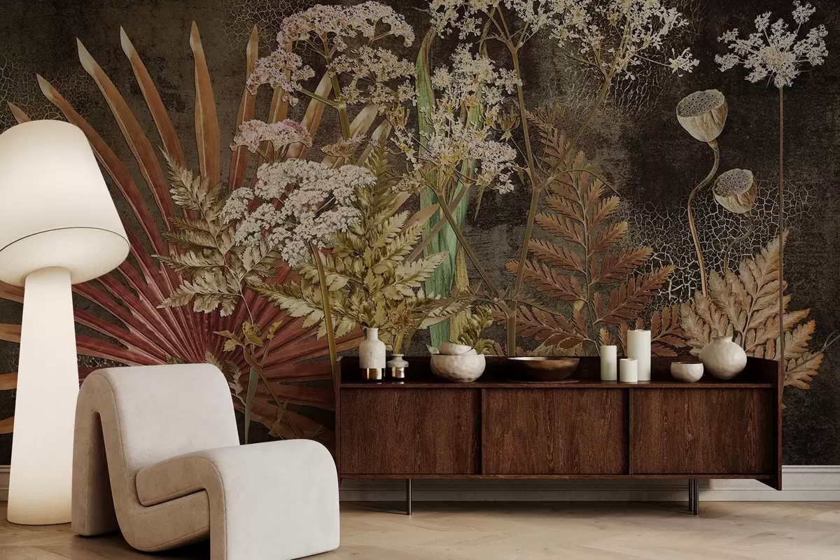 Fotomurales Herbario sobre fondo oscuro Nr. w09323