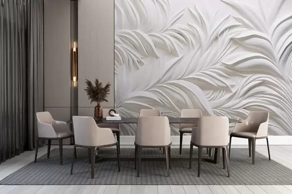 Fotomurales Textura abstracta de hojas blancas y elementos florales, estética minimalista Nr. w09378