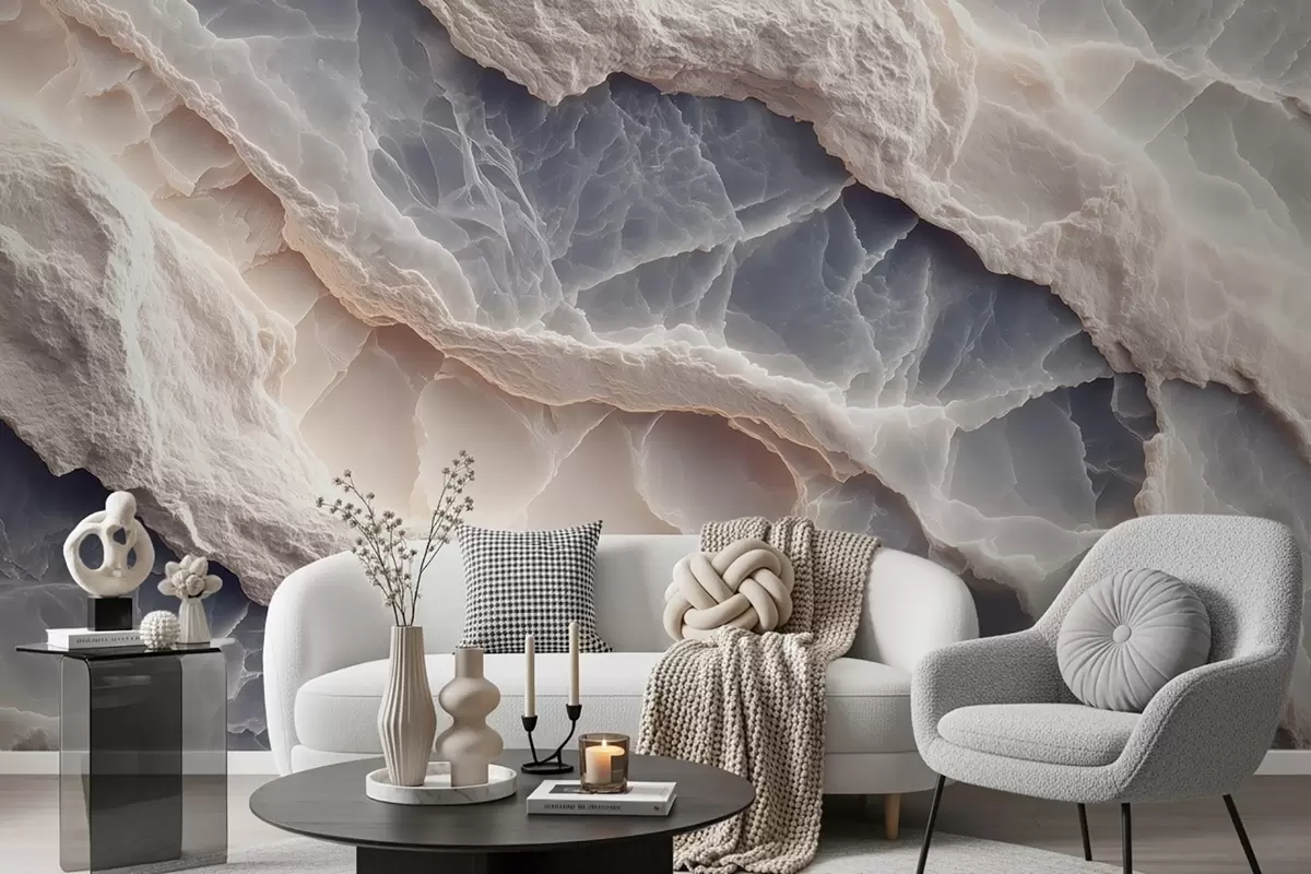 Fotomurales Elegante abstracción al estilo de capas de mármol y minerales en color azul-beige Nr. w09408