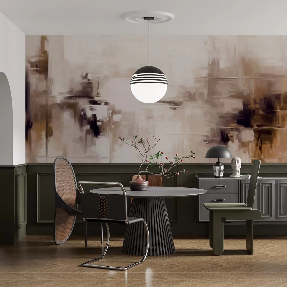 Fotomurales Imitación de pintura abstracta de paisaje con textura, con pinceladas marrones y blancas, estilo moderno Nr. w09422v1