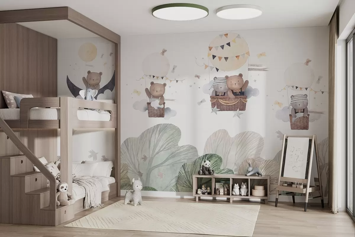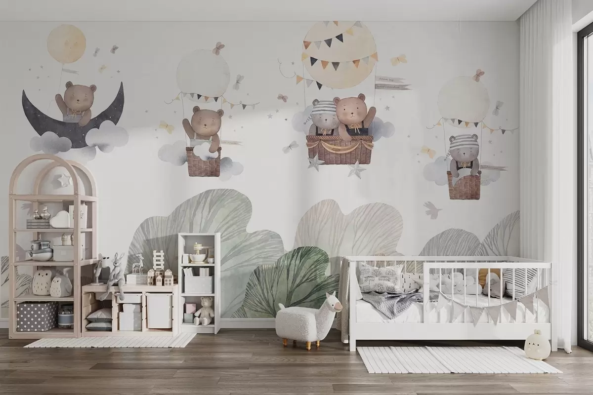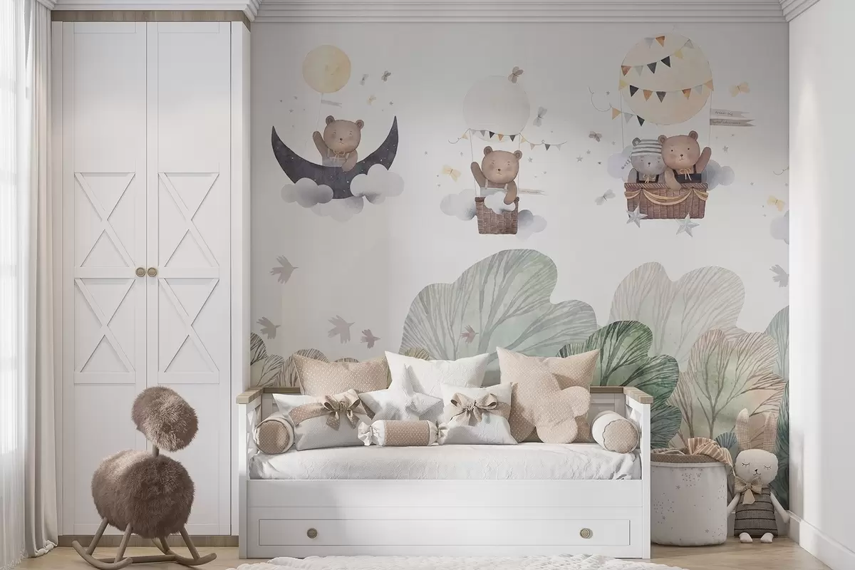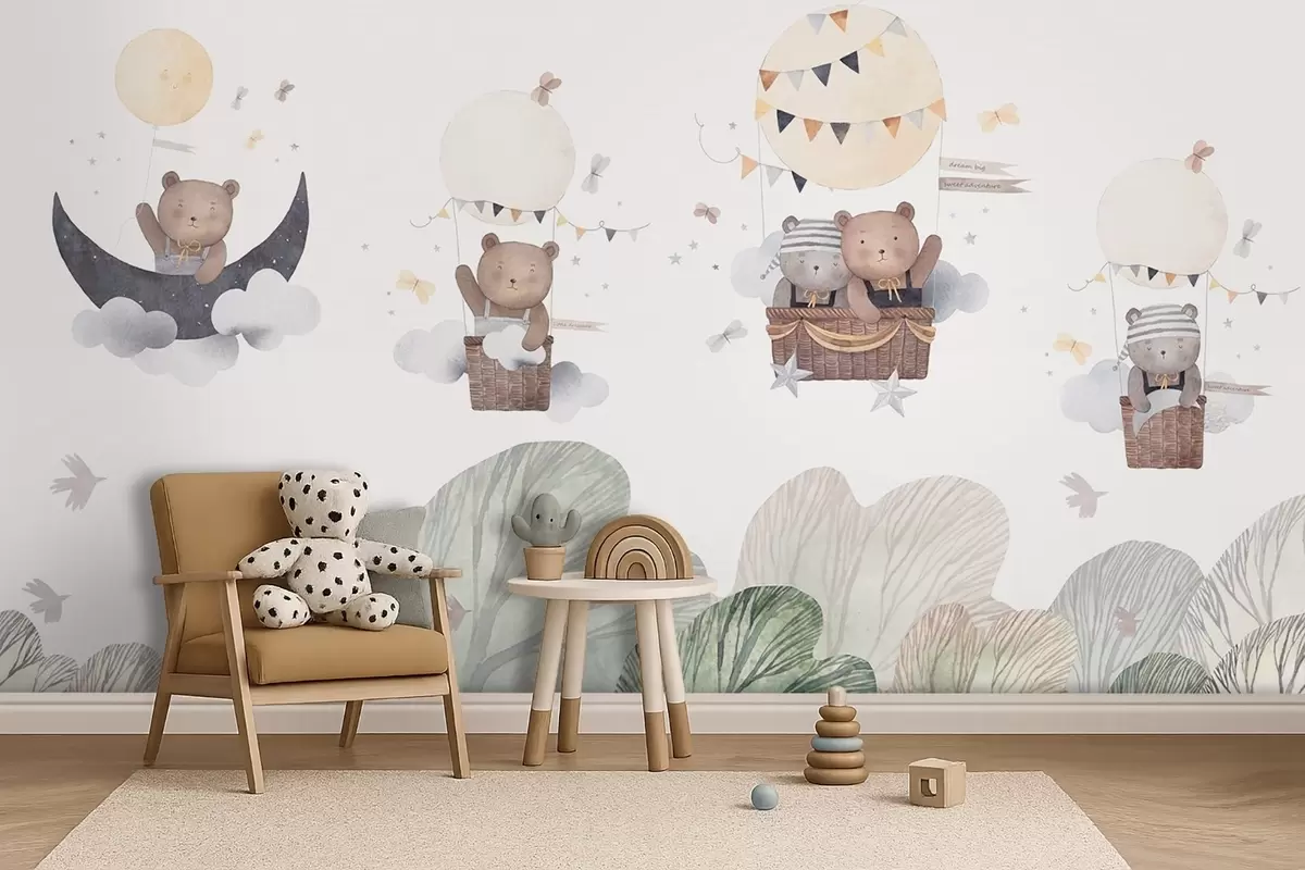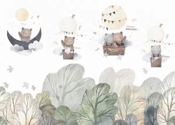 Fotomurales Globos estilo acuarela con osos sobre el bosque Nr. w09437
