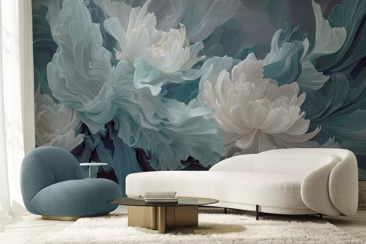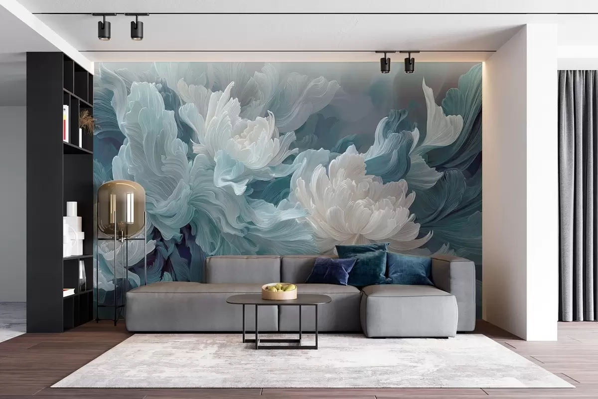 Fotomurales Flores abstractas en tonos azules y turquesas Nr. w09452