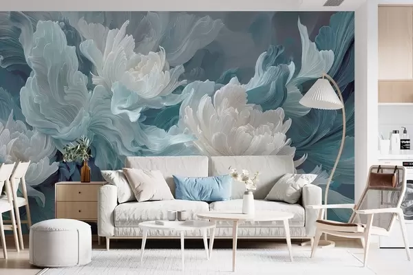 Fotomurales Flores abstractas en tonos azules y turquesas Nr. w09452