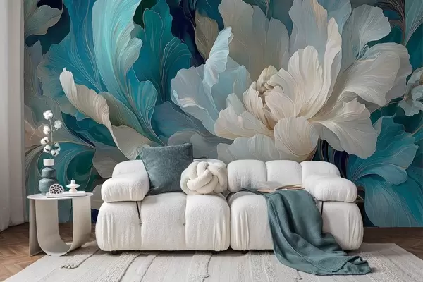 Fotomurales Delicada peonía volumétrica en una paleta de colores fríos Nr. w09456