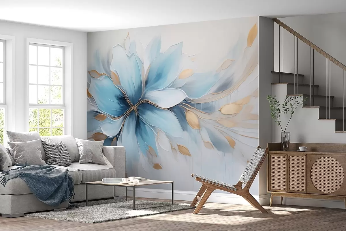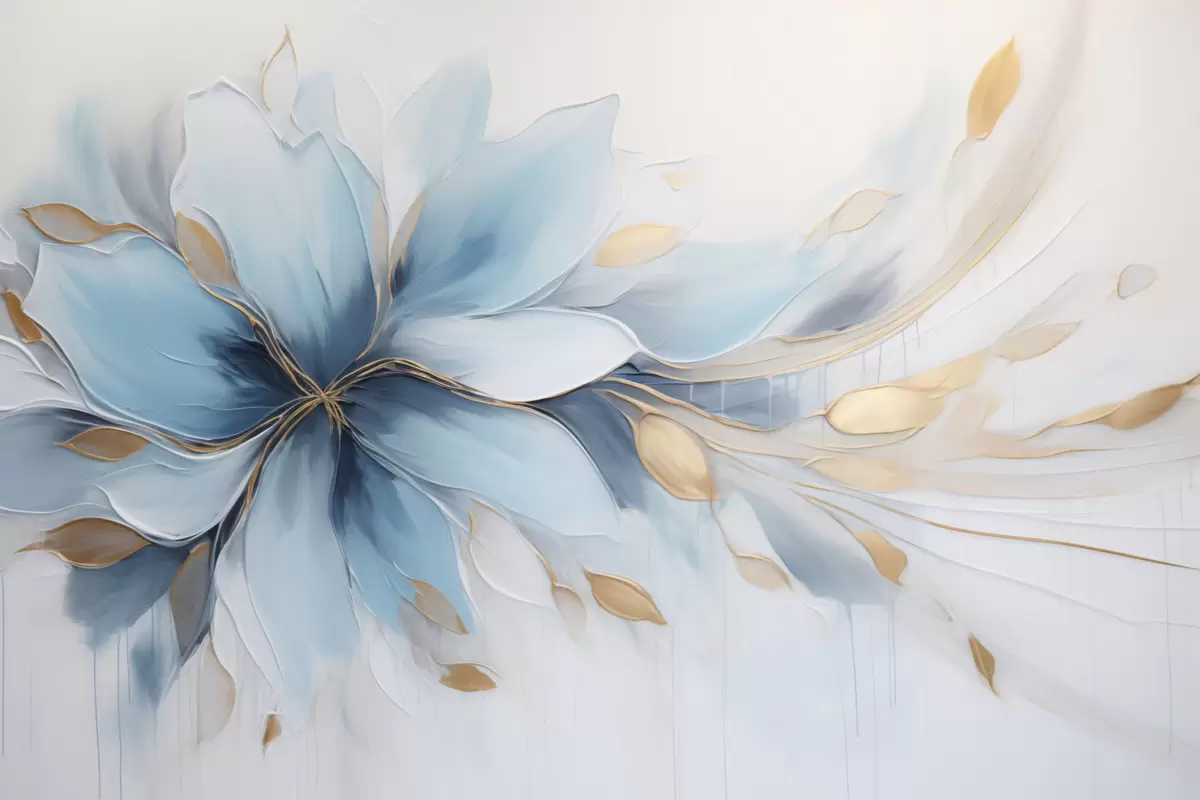 Fotomurales Flor azul abstracta de calma con hojas doradas Nr. w09500