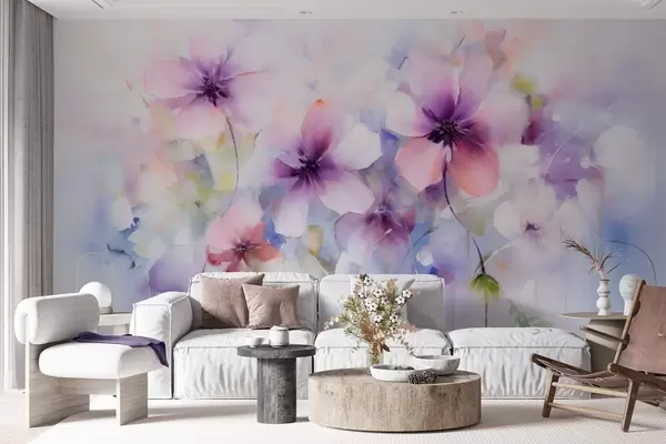 Fotomurales Flores primaverales en acuarela en tonos rosa y morado Nr. w09502