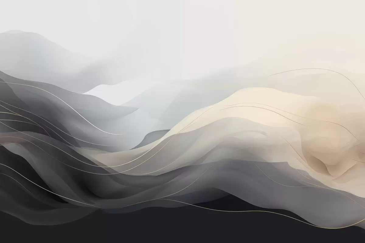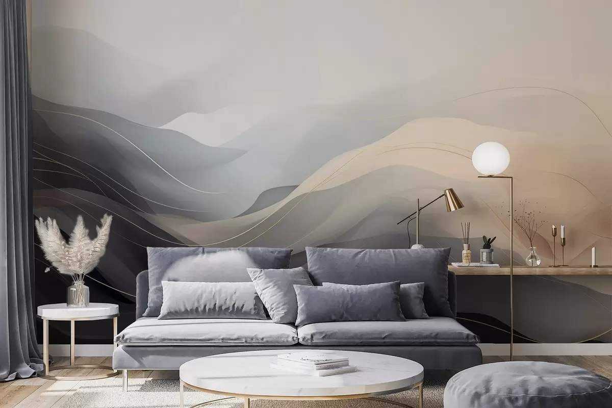Fotomurales Olas abstractas y brumosas en tonos grisáceos y crema con líneas amarillas. Nr. w09504