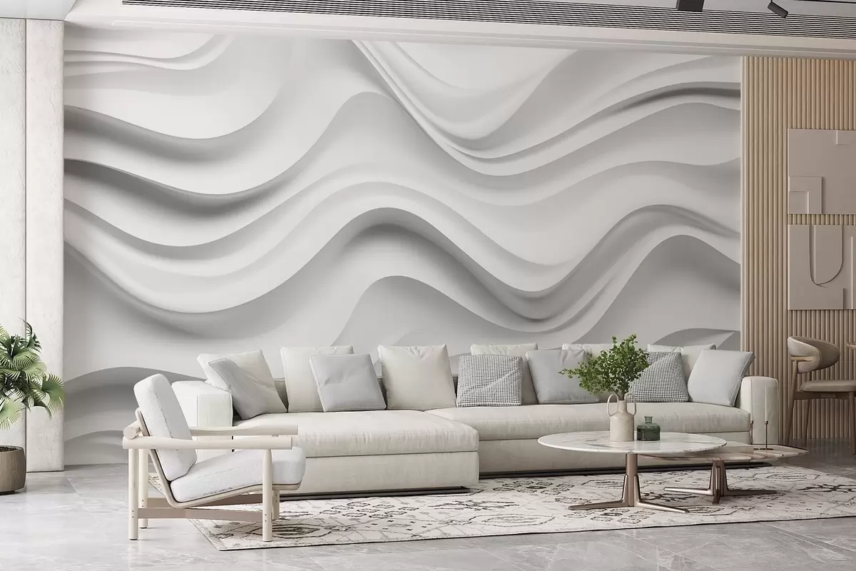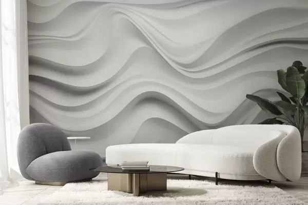 Fotomurales Composición abstracta en blanco y negro en 3D con ondas suaves. Nr. w09506