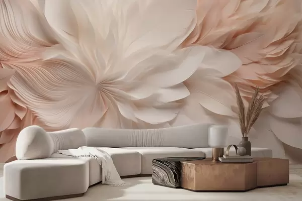 Fotomurales Delicadas plumas abstractas en movimiento en tonos beige y crema Nr. w09509