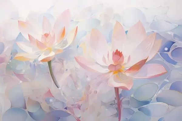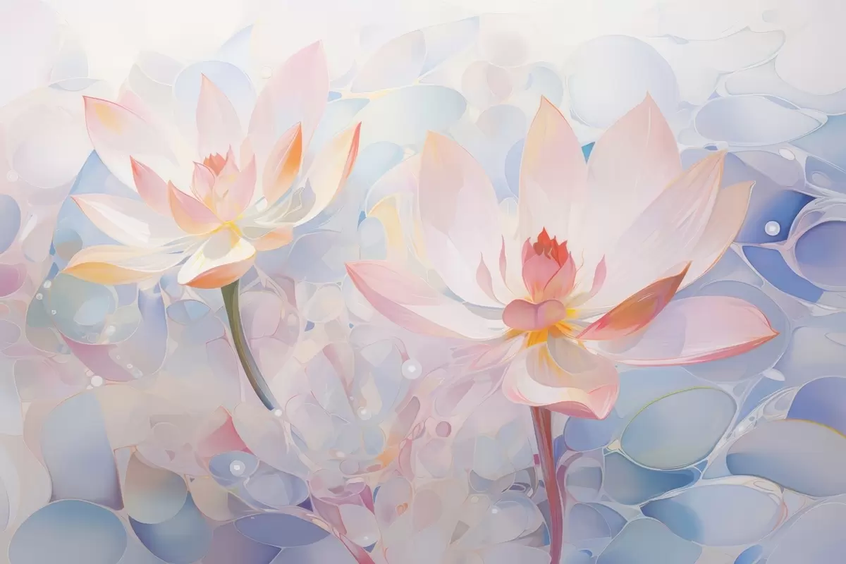 Fotomurales Flores de loto en tonos pastel suaves, estilo acuarela. Nr. w09512