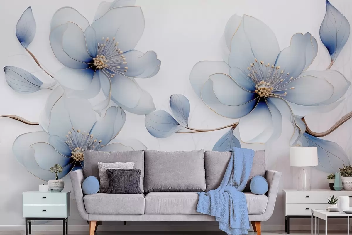 Fotomurales Elegante composición floral de magnolia en tonos azules. Nr. w09520