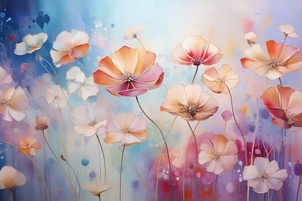 Fotomurales Flores silvestres brillantes en estilo acuarela salpicada Nr. w09521