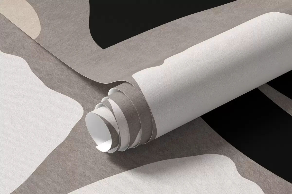Fotomurales Flores y hojas estilizadas de estilo minimalista moderno en beige, negro y blanco, con textura sobre fondo gris. Nr. w09547