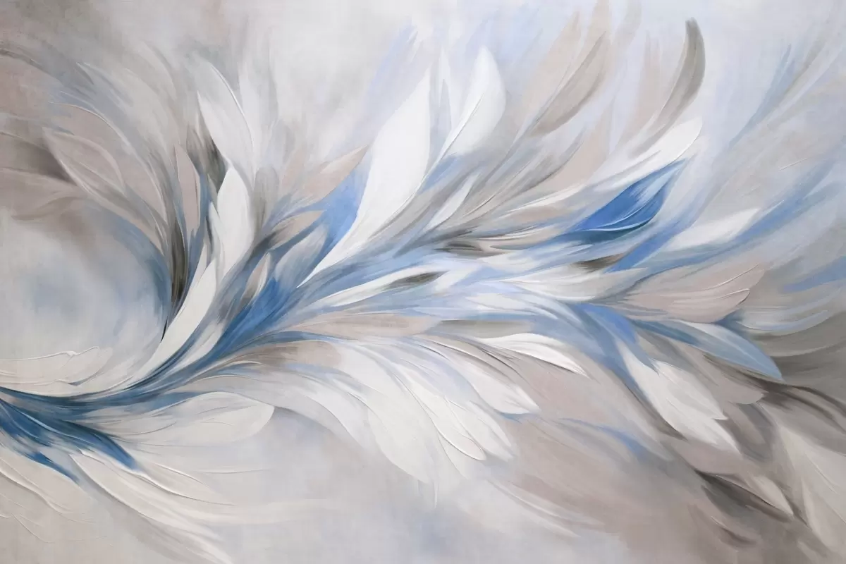 Fotomurales Estilo de pintura abstracta con pinceladas texturizadas en blanco, azul y gris sobre un fondo suave y claro. Nr. w09552v1