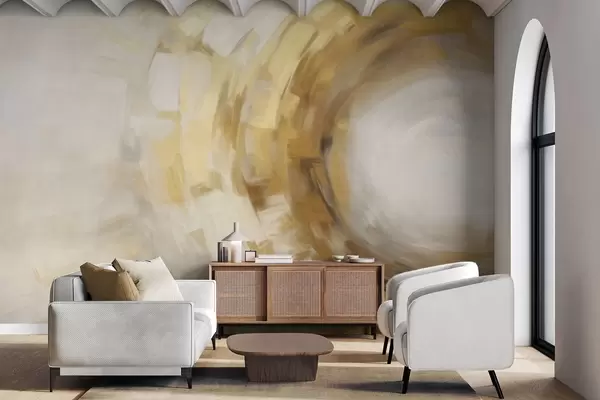 Fotomurales Imitación de pintura abstracta con pinceladas circulares texturizadas en amarillo y blanco, creando una sensación de movimiento Nr. w09558
