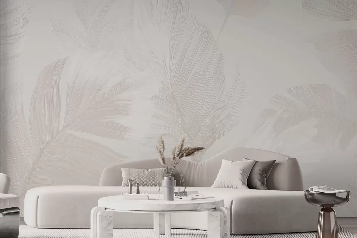 Fotomurales Suaves plumas de color marfil en tonos beige lechoso. Nr. w09563