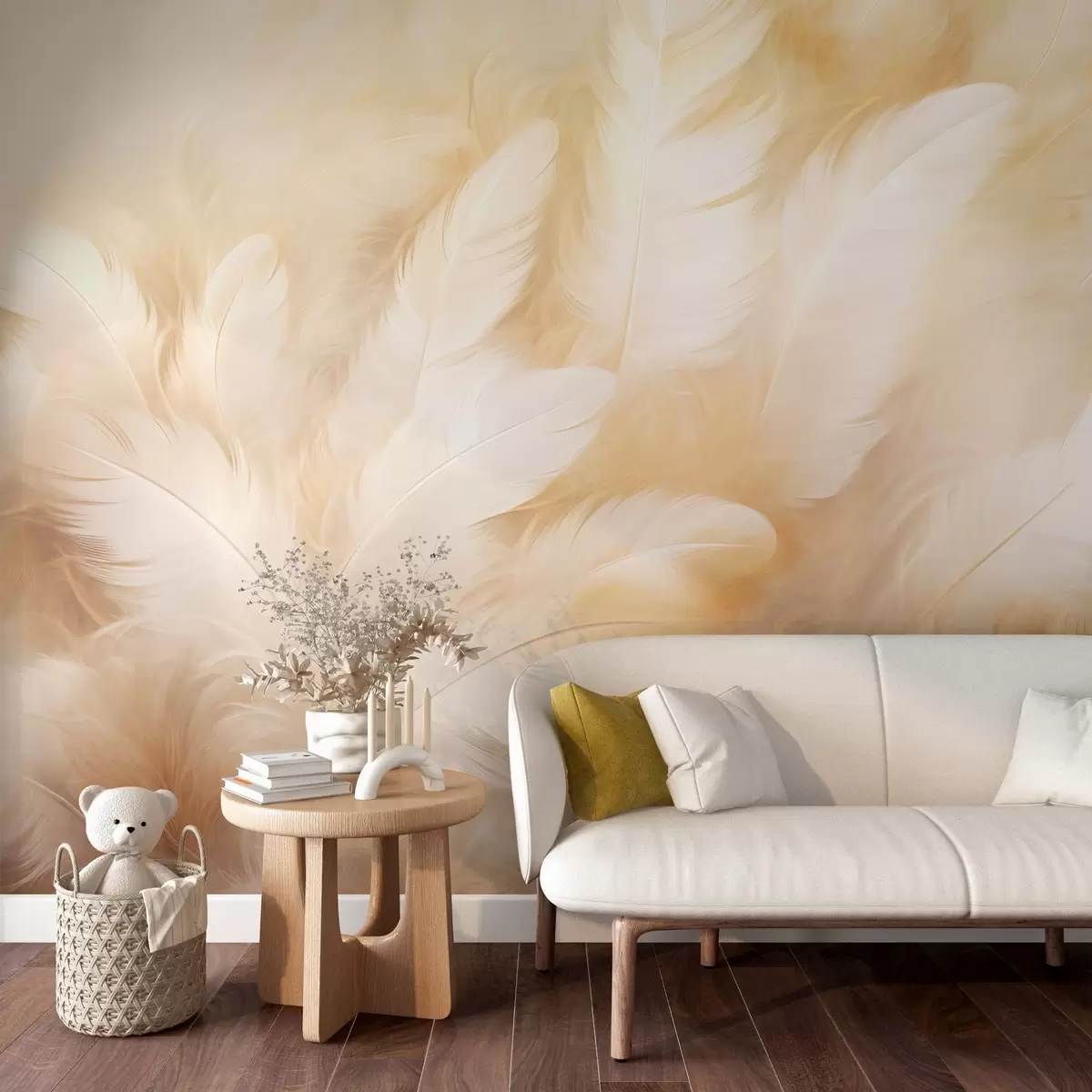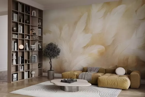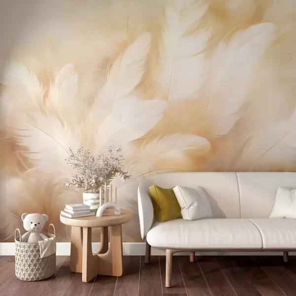 Fotomurales Plumas blancas y amarillas de textura suave. Nr. w09606