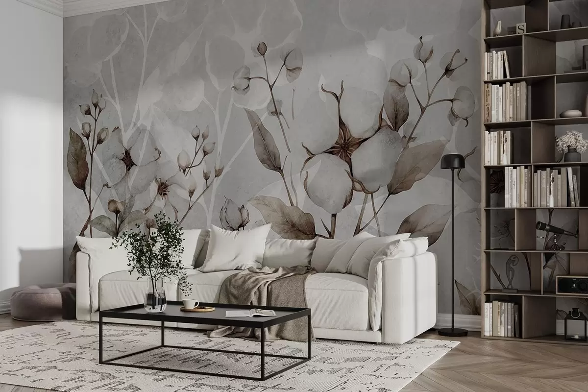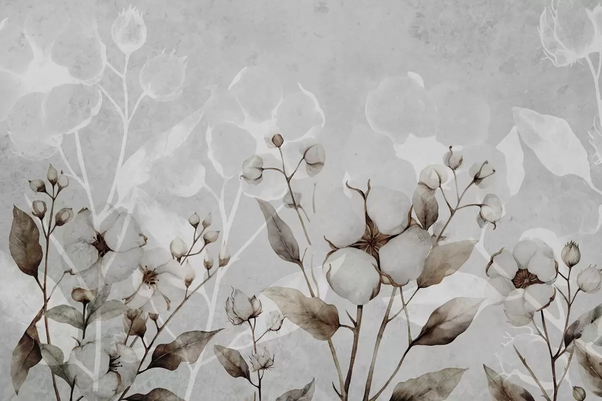 Fotomurales Grandes flores de algodón sobre fondo gris claro. Nr. w09691