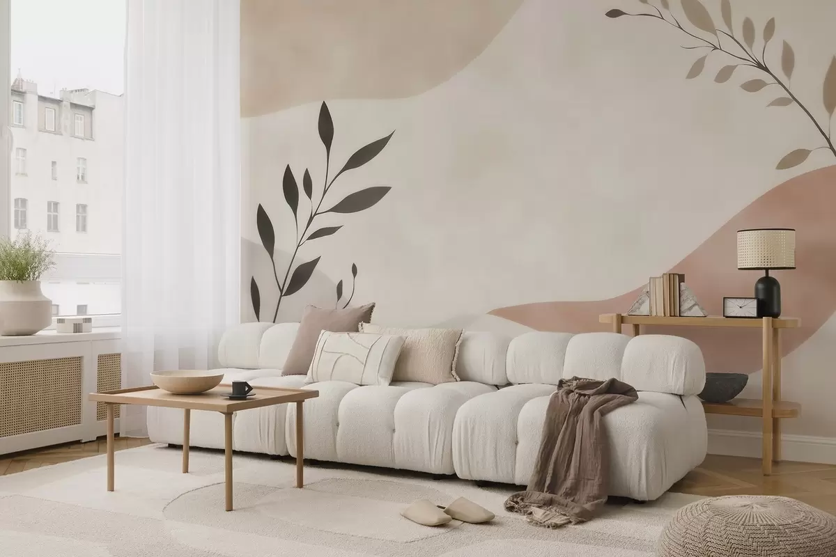 Fotomurales Olas abstractas en tonos beige y melocotón con ramas Nr. w09722