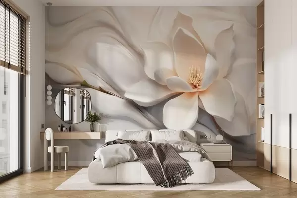 Fotomurales Magnolia blanca tridimensional con imitación de textura de mármol en relieve. Nr. w09729