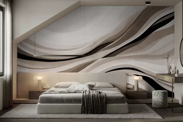Fotomurales Líneas onduladas abstractas en tonos beige y negro sobre un fondo claro, arte texturizado. Nr. w09748